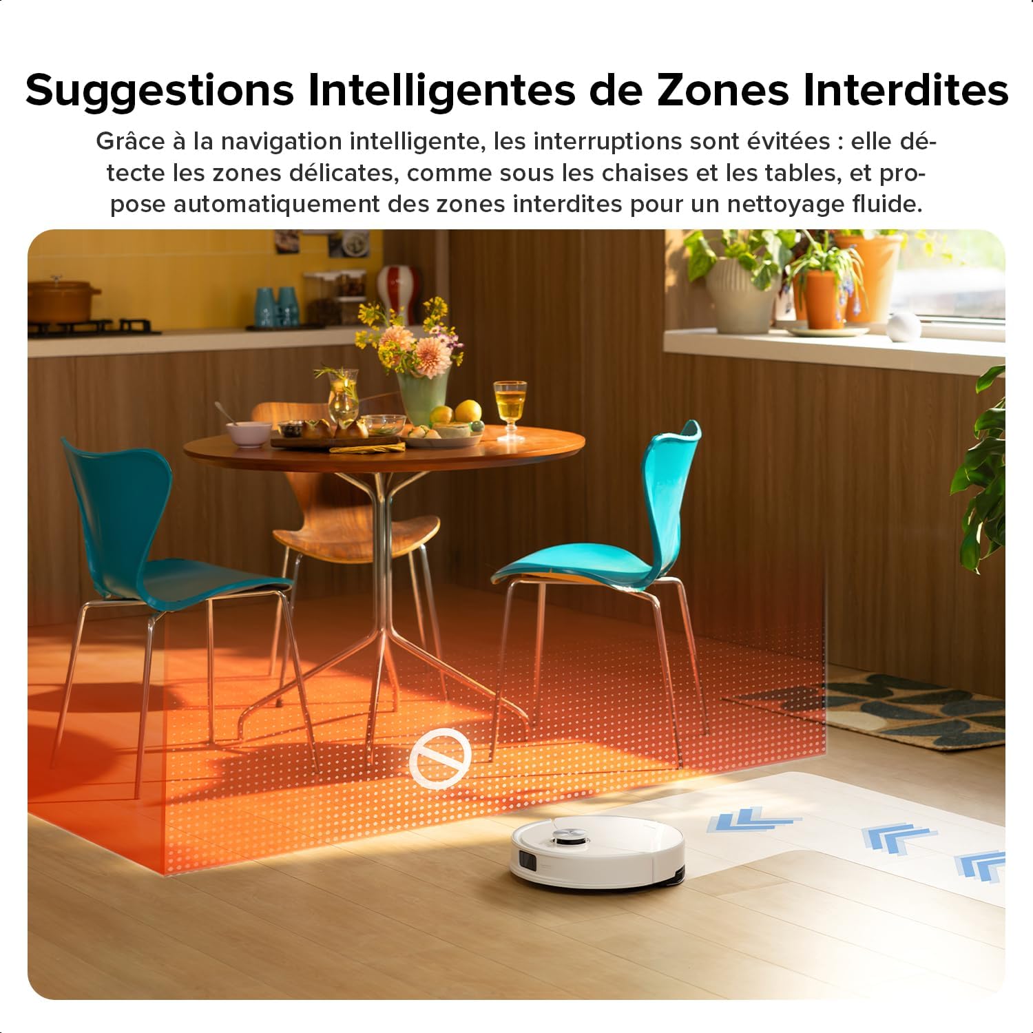Cartographie intelligente, Levage intelligent de la serpillière, Navigation LiDAR, Nettoyage personnalisé avancé, Évitement d'obstacle