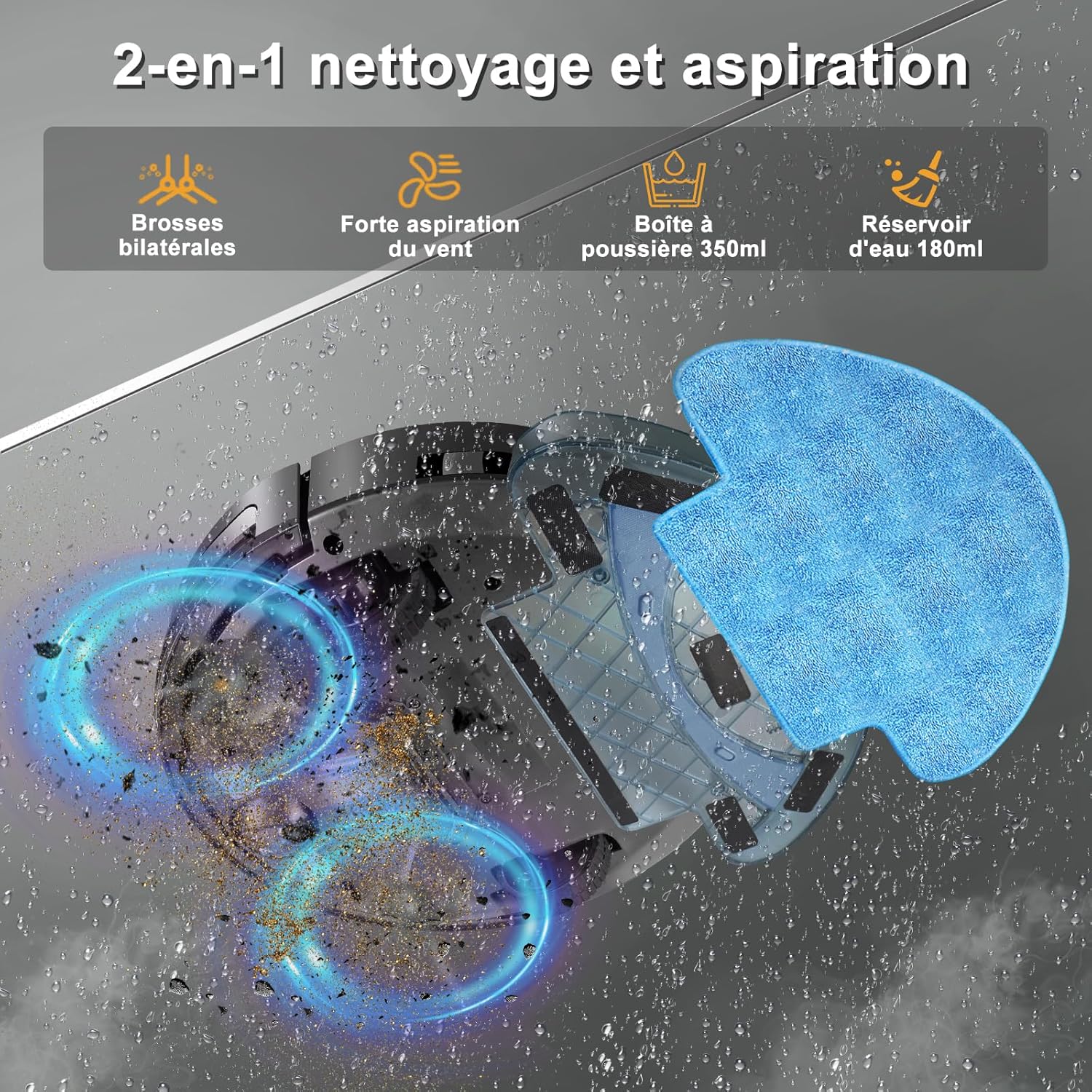 Yigars robot laveur- Robot 2-en-1 d’entrée de gamme, sans cartographie ni station
